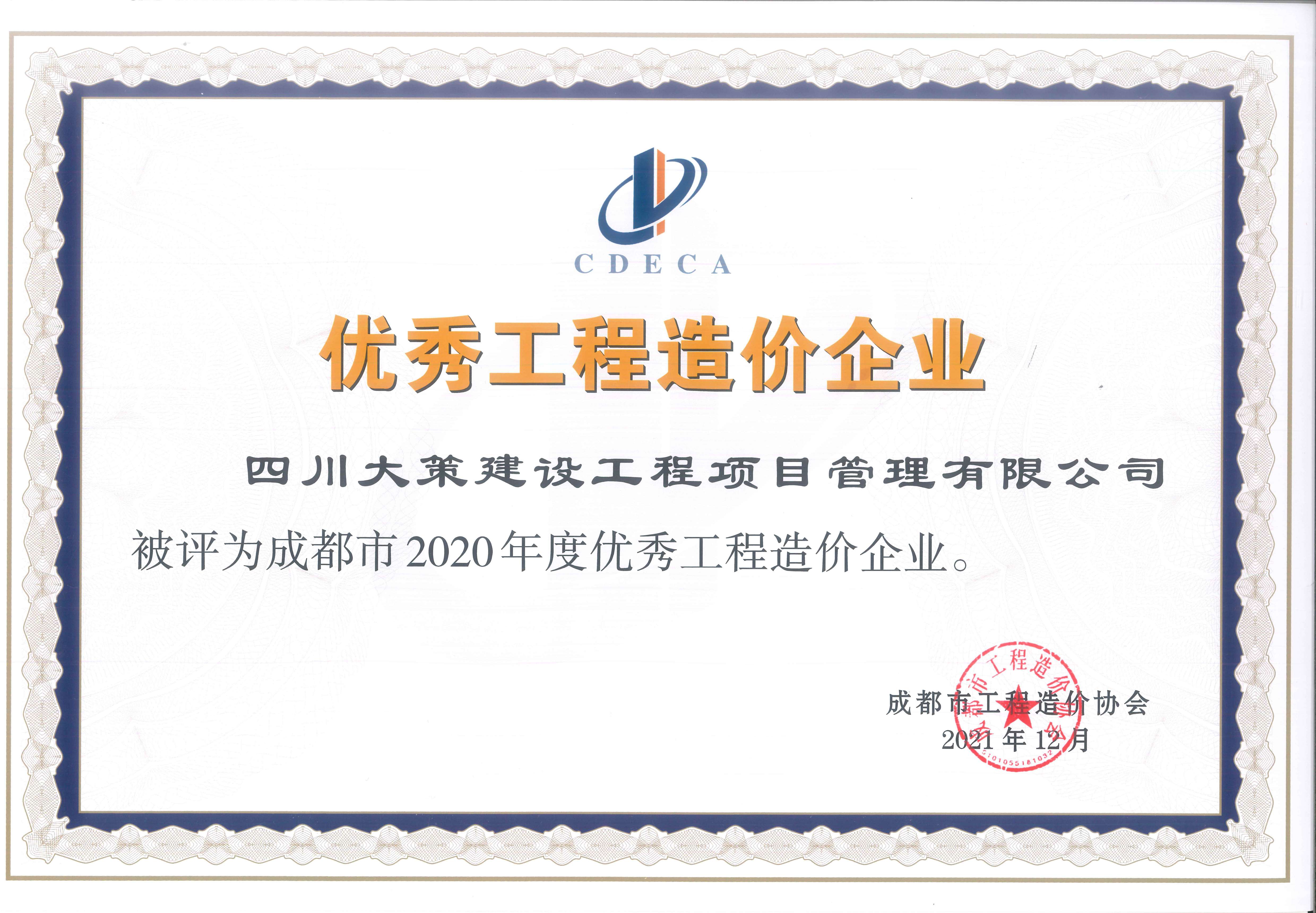 - 2020年度優(yōu)秀工程造價咨詢企業